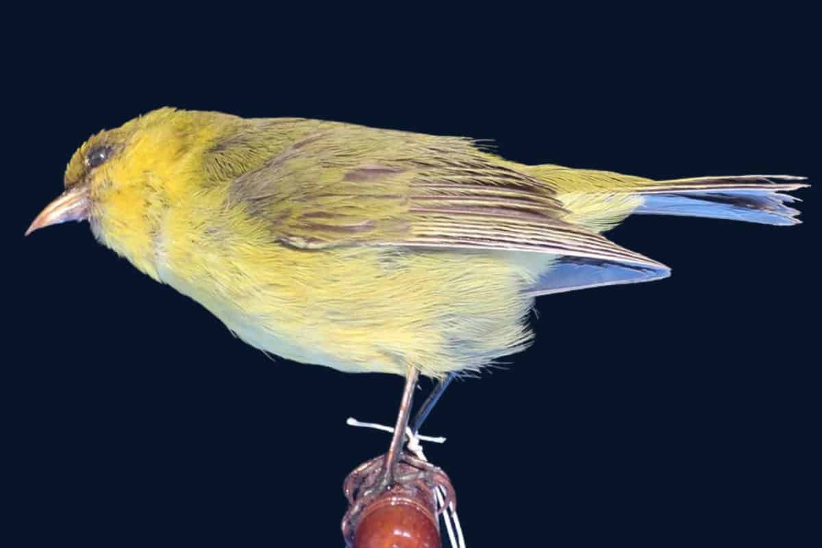 The underparts of the ‘Akeke’e are pale yellow, and it has a small black beak. This unique combination of colors and compact size makes the ‘Akeke’e easily recognizable in its native forest habitat on the island of Kaua’i.